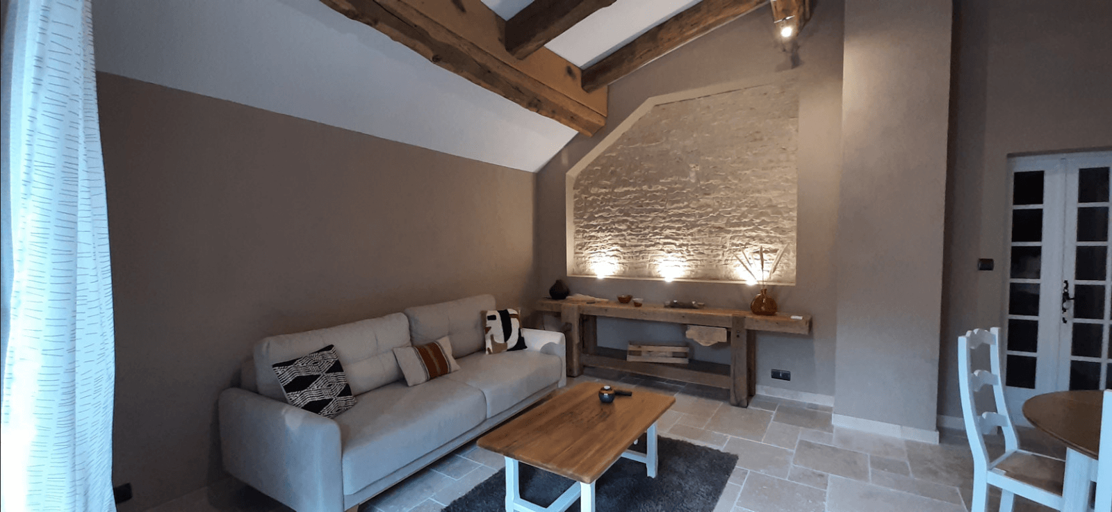 Située à Marsannay-le-Bois en Bourgogne, suite de charme (50 m²) pour 2 personnes (Pour un enfant accompagnant, contactez la propriétaire) , avec son salon privatif (23 m²), sa salle d'eau, ses WC et sa terrasse extérieure privée (15 m²) donnant sur le jardin.