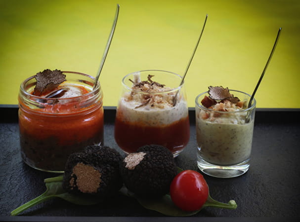 Préparation : mélanger du fromage de chèvre frais avec des truffes fraîches (10% de proportion) et tartiner sur du pain. Passer au four quelques minutes et servir avec une salade de mâche. Pour un plaisir en bouche, déguster avec un jeune Chambolle-Musigny.