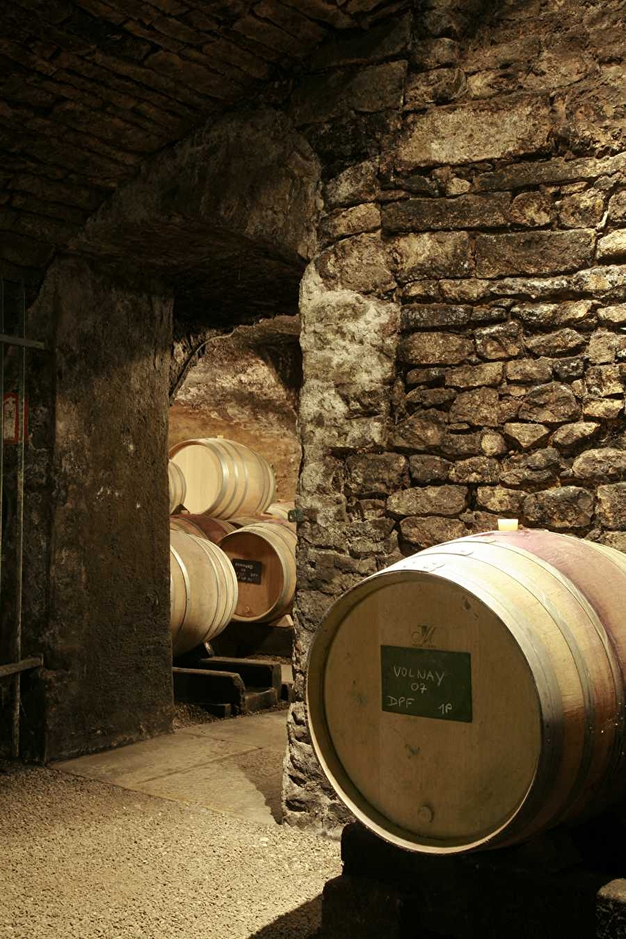 - Typiques de la tradition bourguignonne, les caves du Château de Pommard et leurs 300 000 bouteilles sur lattes.