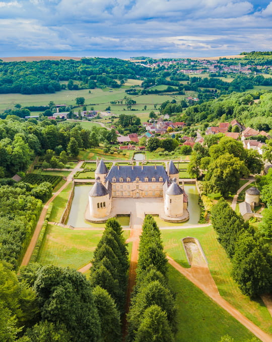 pour les châteaux de Côte-d’OrAu-delà de leur majestueuse architecture, les châteaux de Côte-d'Or possèdent un atout de taille : ils sont entourés de paysages enchanteurs. Perchés sur une colline, entourés de vignobles mordorés ou situés au bord de l’eau, ils offrent un panorama incroyable aux visiteurs près de Dijon. Flânez au sein de leurs cours intérieures, grimpez jusqu'au sommet et profitez d’une vue à couper le souffle. Une fois sur place, on comprend instantanément pourquoi les châteaux de Bourgogne sont prisés pour la location de chambre d'hôtes et les mariages.