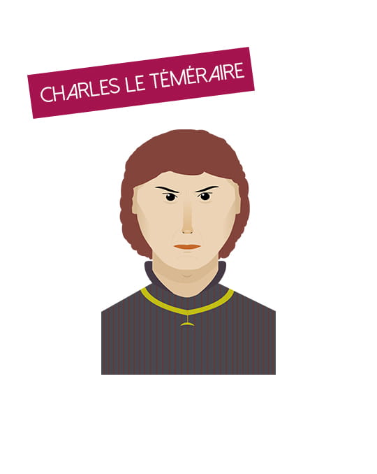 Fils de Philippe le Bon et père de Marie de Bourgogne, il est le dernier Duc de la dynastie des valois. En attendant d’accéder à la tête du duché, Charles Le Téméraire intègre la ligue du Bien Public, un groupe en lutte contre le roi de France Louis XI, l’autorité et les privilèges de la royauté. Lorsqu’il devient Duc, il agrandit le territoire en occupant le duché de Lorraine. Cependant, le duc de Lorraine résiste et Charles le Téméraire est tué à Nancy en 1477. Son corps sera retrouvé dans un marécage, en partie dévoré par les loups.