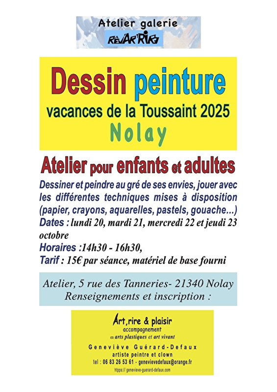 Venez croquer et peindre les paysages de Nolay, au sud du pays beaunois et aux portes du Morvan : exercer son œil et apprendre les bases du dessin ; apprivoiser et jouer avec les couleurs via les techniques d'aquarelle, de pastel sec ou gras ; dessiner et peindre sur le motif, dans le jardin ou en atelier selon le temps ; et surtout s'exprimer avec plaisir. Expérimentés et débutants bienvenus !