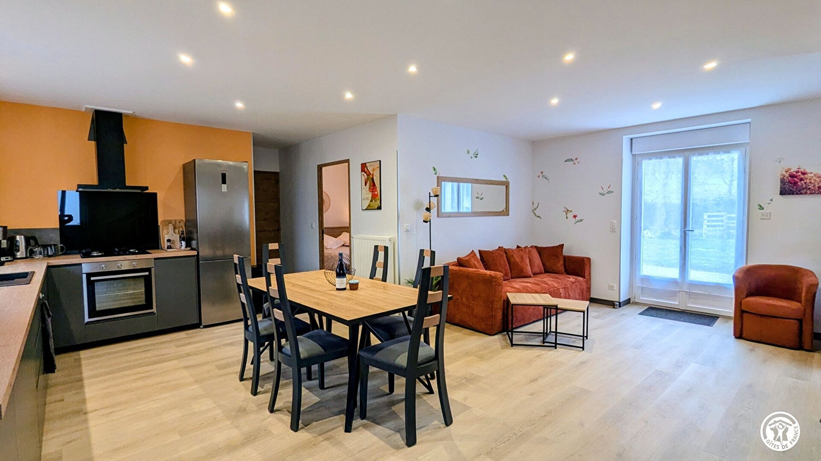 Dans un petit village paisible, sur la Route des grands vins de Bourgogne, le gîte " Au Fil de l'eau", maison entièrement rénovée mitoyenne à la maison des propriétaires, vous offre : au rez-de-chaussée : grande pièce de vie avec cuisine entièrement équipée (cafetière " Senseo" + cafetière filtre), ouverte sur salon/salle à manger, TV , Wifi, 1 chambre avec 1 lit de 160 cm, 1 WC indépendant, 1 salle d'eau. A l'étage : 1 palier avec bibliothèque , jeux de société , canapé convertible (1 personne supplémentaire sur demande), 1 chambre avec 1 lit de 160 cm et 1 chambre avec 2 lits de 90 cm (jumelables), 1 salle d'eau, 1 WC indépendant. Climatisation réversible à l'étage. Matériel bébé à disposition sur demande : lit parapluie, chaise haute, matelas à langer, baignoire, réducteur de WC, transat. A l'extérieur : Terrasse sans vis-à-vis, avec salon de jardin, barbecue. Accès en partie au jardin des propriétaires. Petite rivière peu profonde sur le terrain .Parking privé dans la propriété. Terrain non clos.