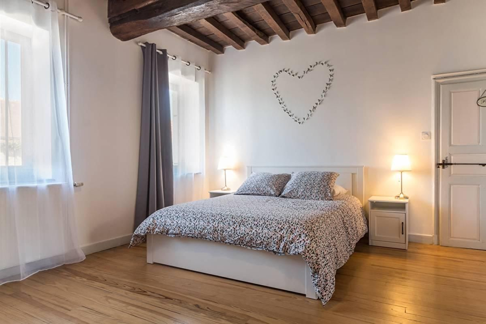 Idéalement située entre Dijon, Dole et Besançon, belle maison de 1750 de plain pied entièrement rénovée tout en conservant le charme de l'ancien : plafonds à la Française, cheminées en marbre, parquets, boiseries et huisseries d'époque. Salle à manger avec cuisine intégrée et cheminée insert, grand salon, 2 vastes chambres de 21 m² avec chacune 1 lit 160 et possibilité d'ajouter un lit d'appoint (en supplément), salle de bains complète avec baignoire, douche et WC. Le gîte est mitoyen à la maison des propriétaires et à l'atelier de couture d'Emily, sur un beau terrain clos de 3800 m², avec cour et jardin communs. Abri vélos. Piscine commune et chauffée de Juin à Septembre, de 4x9m sécurisée par un portillon fermé à clé et un volet.