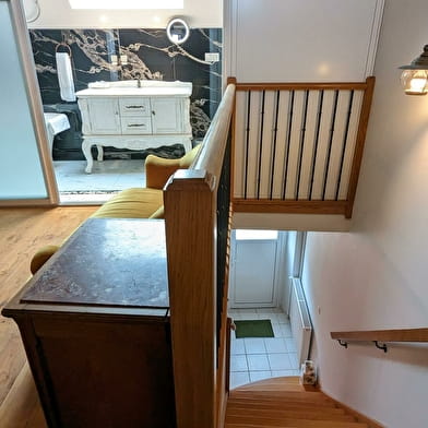 Dans le prolongement du restaurant (ambiance bistro/guinguette), l’accès au gîte se fait par une terrasse privative à l’hébergement.