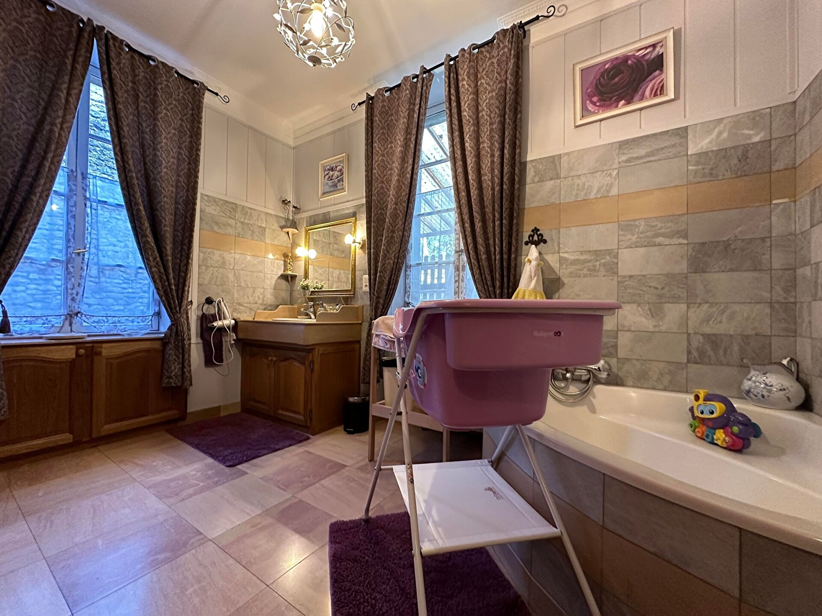 Salle de bains avec douche et baignoire d’angle. WC séparés. Buanderie avec machine à laver.