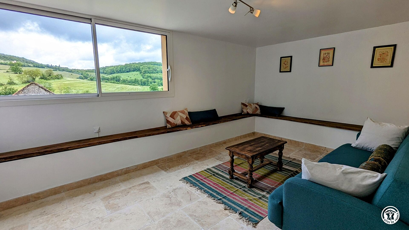 Dans un petit village calme, jolie maison indépendante, entièrement rénovée avec goût. Rez-de-chaussée : hall d'entrée, salon avec TV connectée, salle d'eau avec douche italienne, 1 chambre avec 1 lit de 160X200 cm. A l'étage : 1 chambre ouverte sur palier avec 1 lit de 140X190 cm, communicante avec 1 chambre avec 1 lit de 140X190 cm avec salle d'eau privative, WC indépendant. Lit bébé, chaise haute bébé et pot wc sur demande. Au niveau inférieur : salle à manger avec poêle à granulés (1er sac offert, au-delà 6 €/sac) et cuisine entièrement équipée. 1 WC indépendant. Accès direct à la terrasse et au jardin, offrant une très jolie vue dégagée sur la campagne. Parking public devant le gîte.