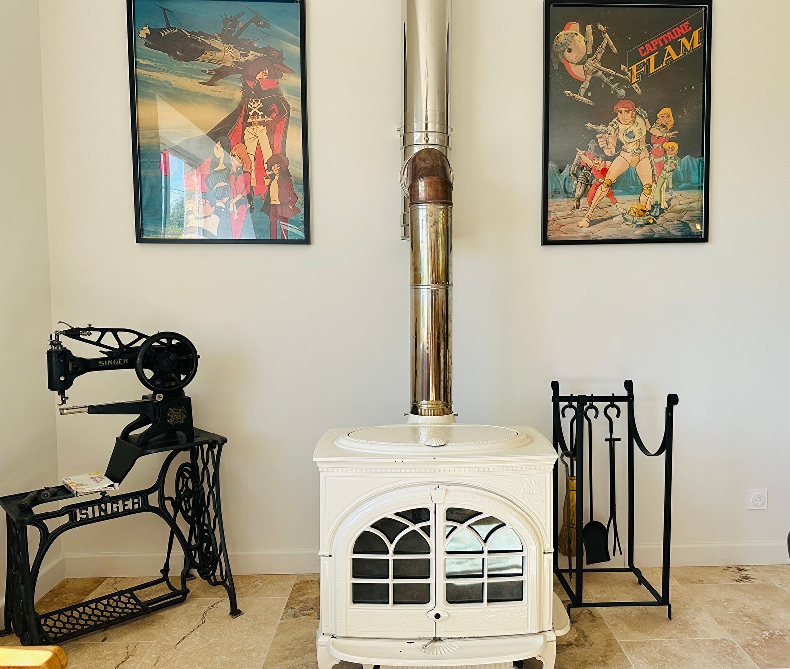 Une vaste pièce à vivre lumineuse et chaleureuse vous attend. Elle comprend une cuisine ouverte entièrement équipée, un espace repas convivial pour partager de bons repas et un coin salon avec un poêle à bois (bois fourni), parfait pour les soirées d’hiver. Cet espace offre un accès direct à une grande terrasse avec mobilier de jardin et barbecue charbon.