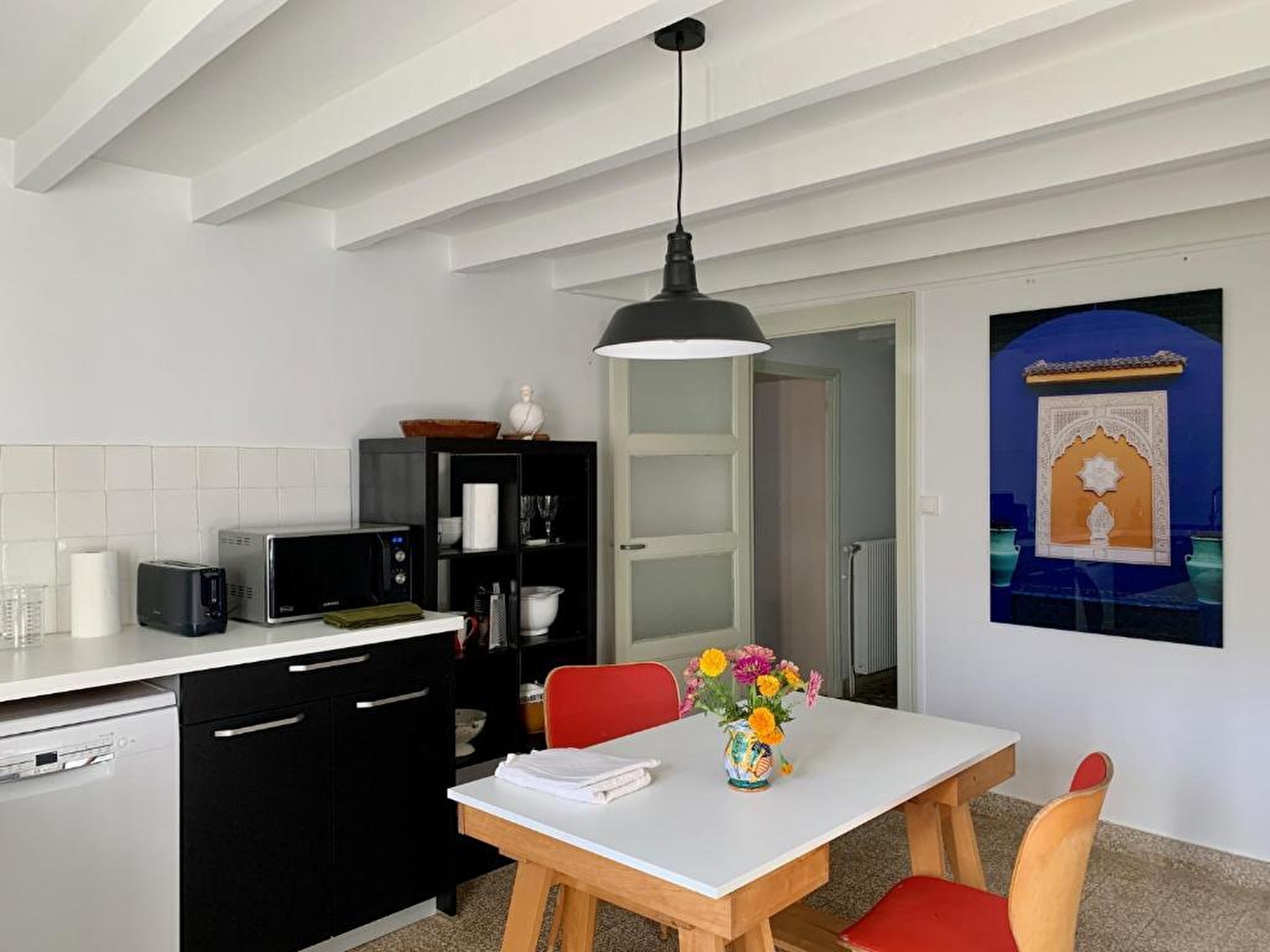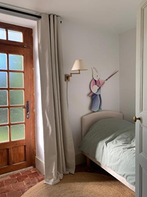 La maison comprend 2 chambres adultes (lits doubles) et 1 chambre enfant (lit simple).
