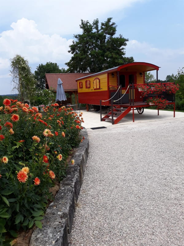 Aux portes du Parc naturel régional du Morvan, belle roulotte en pin aménagée pour 2 à 4 personnes sur un grand terrain privatif de 2 200 m² . A l'intérieur, l'espace a été optimisé et la décoration soignée. Cuisine fonctionnelle avec 2 plaques vitrocéramiques. Un lit 160x200 et 2 lits gigogne 90x190. Salle d'eau et WC séparé. Terrasse abritée et terrain clos avec barbecue et salon de jardin. Parking. Terrain de pétanque. Vélos enfant à disposition gratuitement et vélos adultes payants (6€ la 1/2 journée, 10 € la journée et 40 € la semaine). Lit parapluie et chaise haute pour bébé sur demande. Prestation petit-déjeuner possible sur demande auprès des propriétaire et au tarif de 10€ par personne. Piscine commune couverte non chauffée de 9,20 x 3,70, ouverte d'avril à octobre selon la météo. Balançoire. Abri vélos.