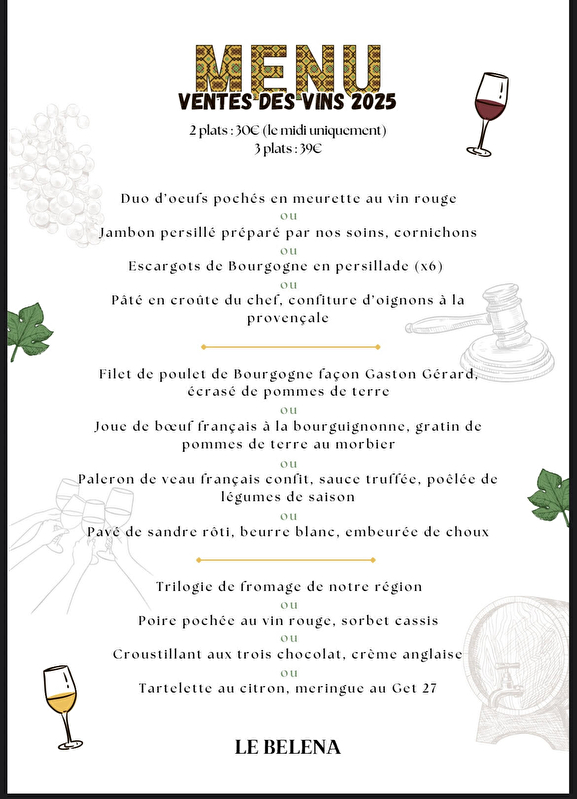 Le Belena : Menu Vente des Vins 2025
