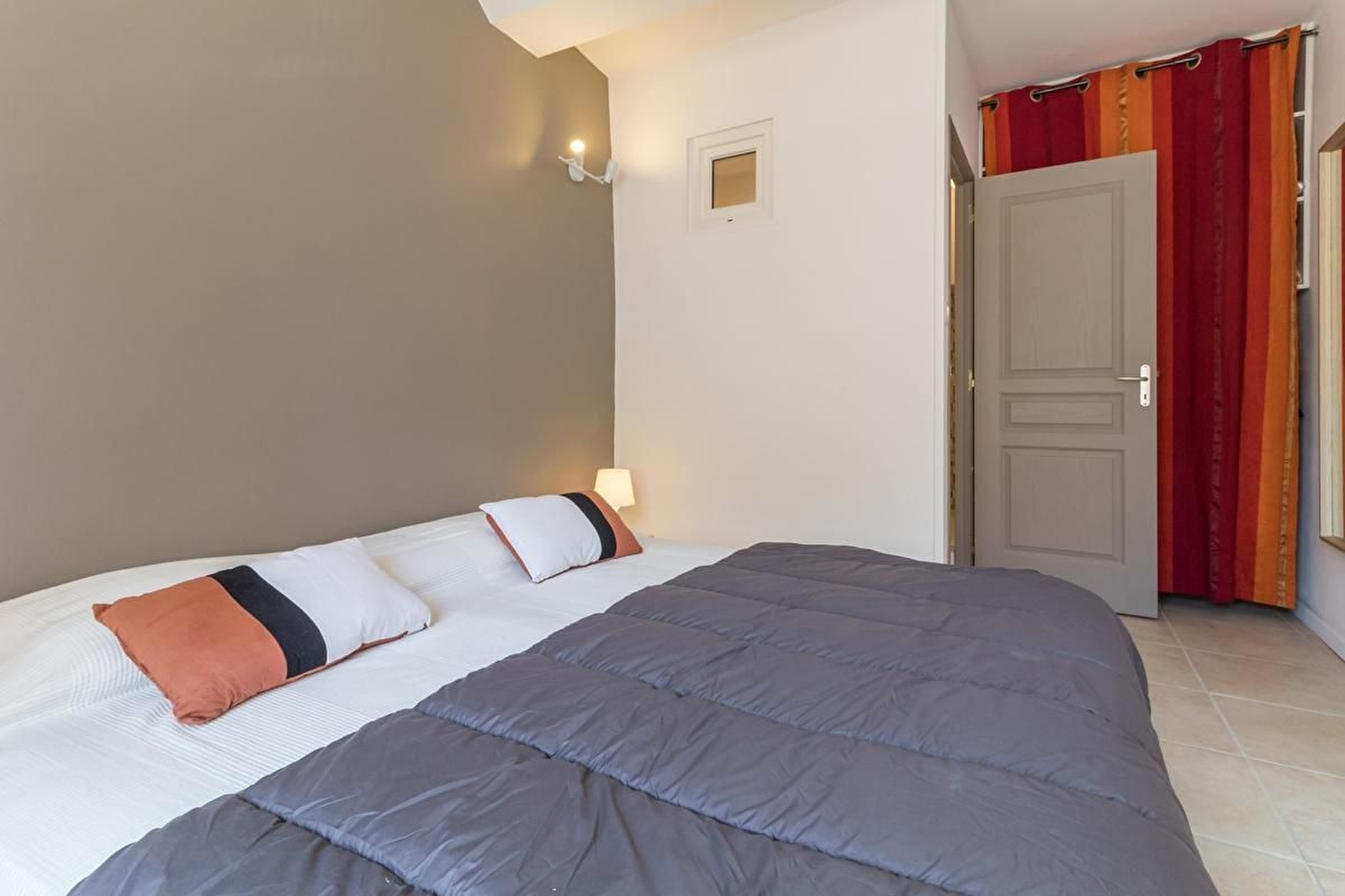 Séjour avec cuisine ouverte sur les espaces salle à manger et salon, avec pierres apparentes. 1 clic-clac. Une chambre avec 2 lits 90 jumelables en grand lit 180. Belle salle d'eau attenante. WC indépendant. Lit bébé et chaise-haute.