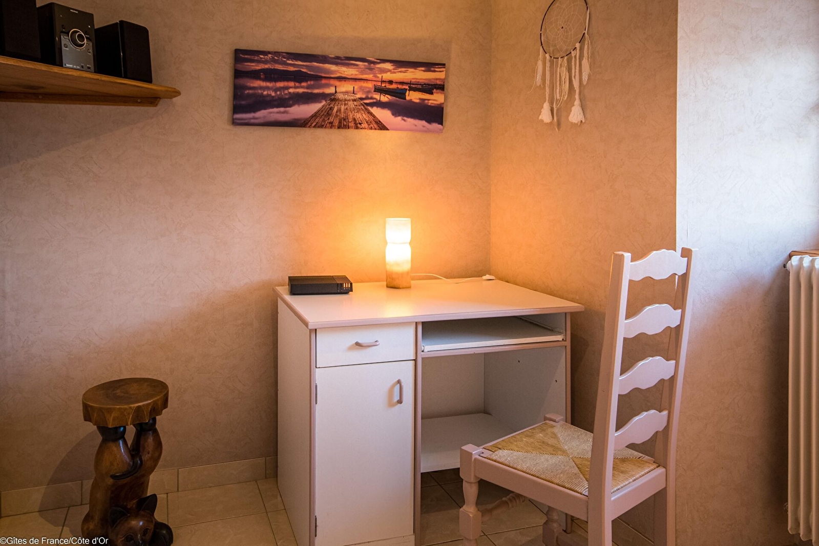 Dans un petit village, à mi-chemin entre Pouilly-en-Auxois et Arnay-le-Duc, le gîte de Simone vous offre, au rez-de-chaussée : grande cuisine moderne et fonctionnelle, salon avec canapé , TV écran plat, 1 chambre avec 2 lits de 90 cm, 1 bureau indépendant avec chaîne-hifi, 1 salle d'eau avec WC. A l'étage : 1 chambre avec 1 lit de 140 cm, 1 chambre avec 1 lit de 160 cm, 1 WC indépendant. Matériel bébé à disposition : 1 lit parapluie, 1 chaise-haute, 1 baignoire bébé et un matelas à langer. Place de parking devant le gîte. Terrasse couverte, avec store, salon de jardin. Petit jardin entièrement clos.