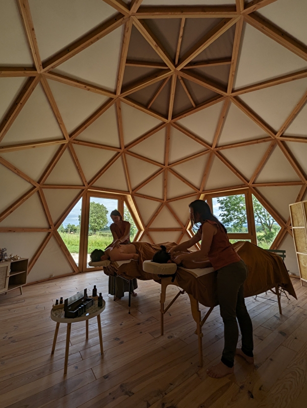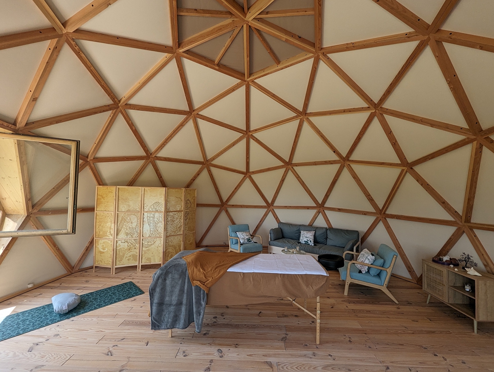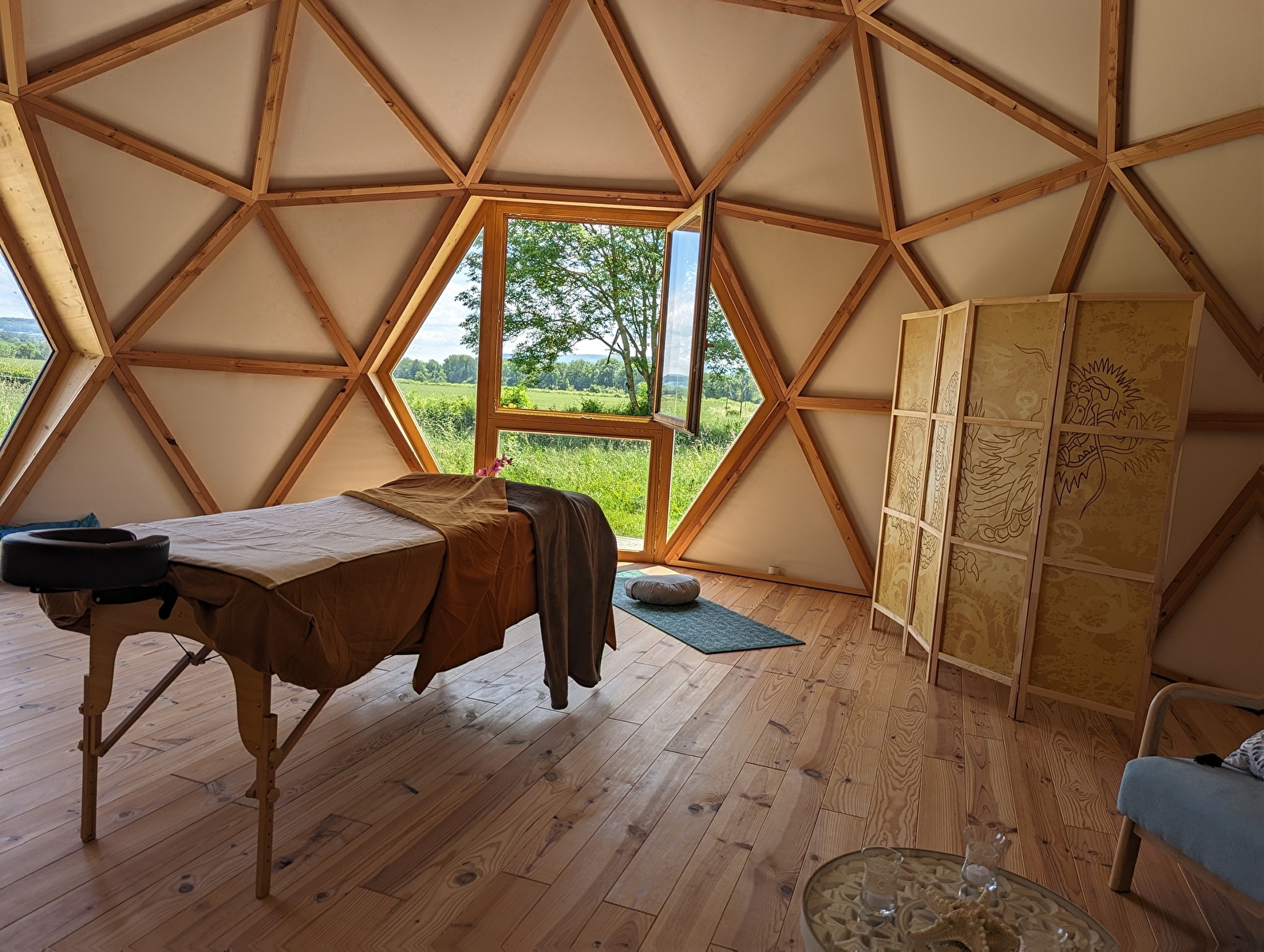 Installées au cœur de notre ferme, dans un cadre naturel apaisant entouré de chevaux, nos sessions au dôme Ecrin de Gaia offrent un moment hors du temps, loin du stress et du bruit du quotidien propice à la déconnexion totale. Chaque formation alliant théorie et pratique, vous invite à expérimenter des techniques puissantes et innovantes pour renforcer votre santé, renouer avec vos émotions ou apprendre à donner un massage relaxant. Repartez avec des outils concrets et un savoir-faire que vous pourrez appliquer chez vous en toute sérénité.