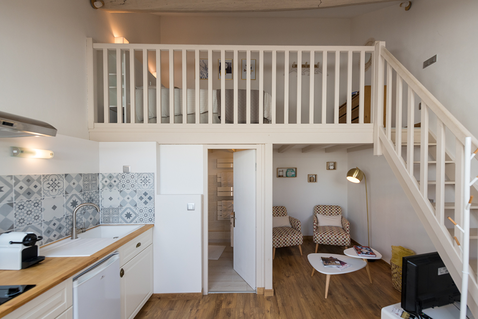 Cet appartement charmant et lumineux vous accueille au 1er étage, avec une entrée indépendante: une cuisine ouverte équipée, un coin salon intime, une jolie chambre en mezzanine et une salle de bain avec douche.