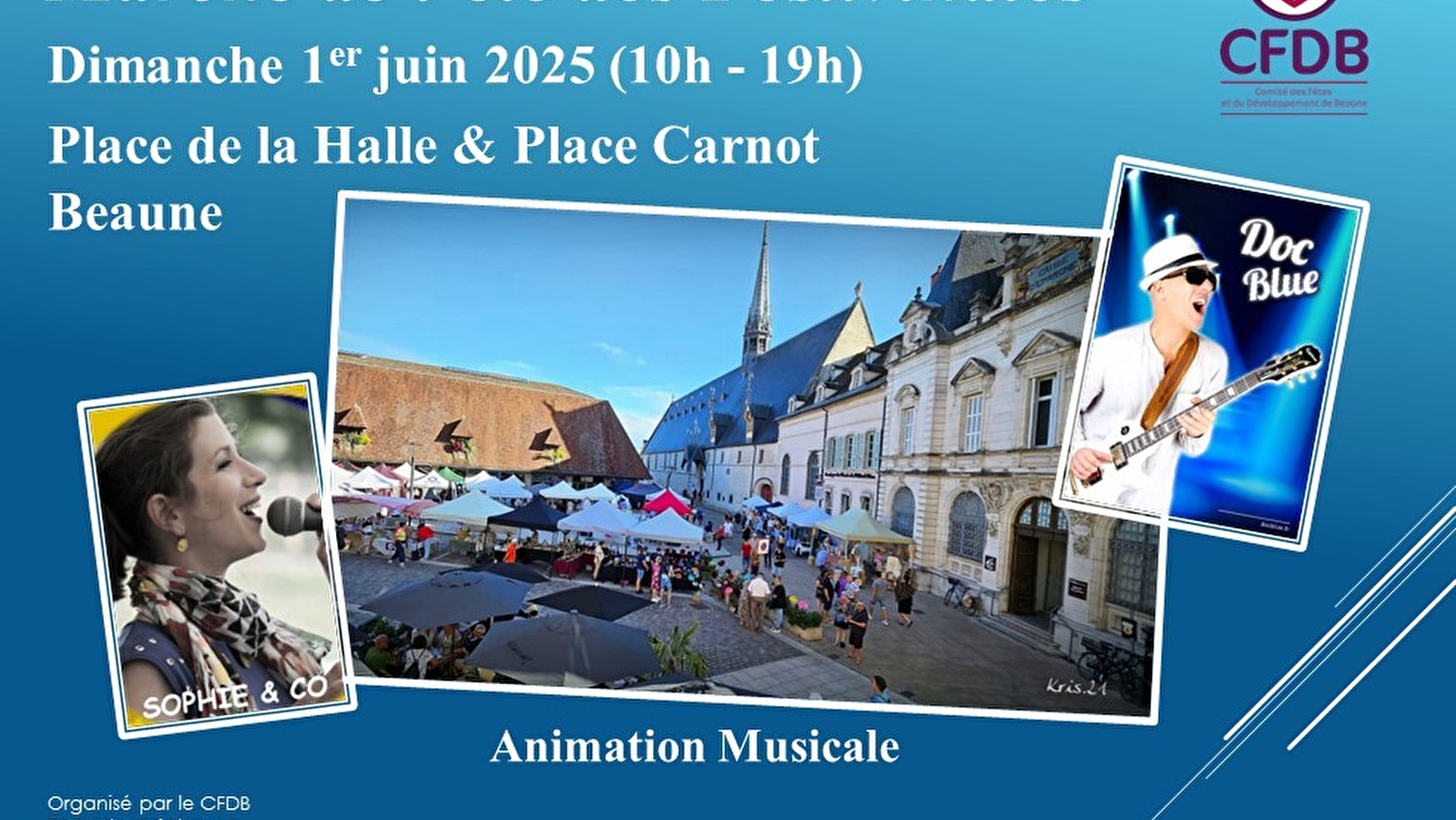 Afin de promouvoir les artisans et commerçants de la Côte d’Or, de Bourgogne et d’ailleurs, le Comité des Fêtes et du développement de Beaune (CFDB) organise le dimanche 1 juin 2025 de 10h00 à 19h00, place de la Halle et place Carnot à Beaune, son premier marché de l’été.