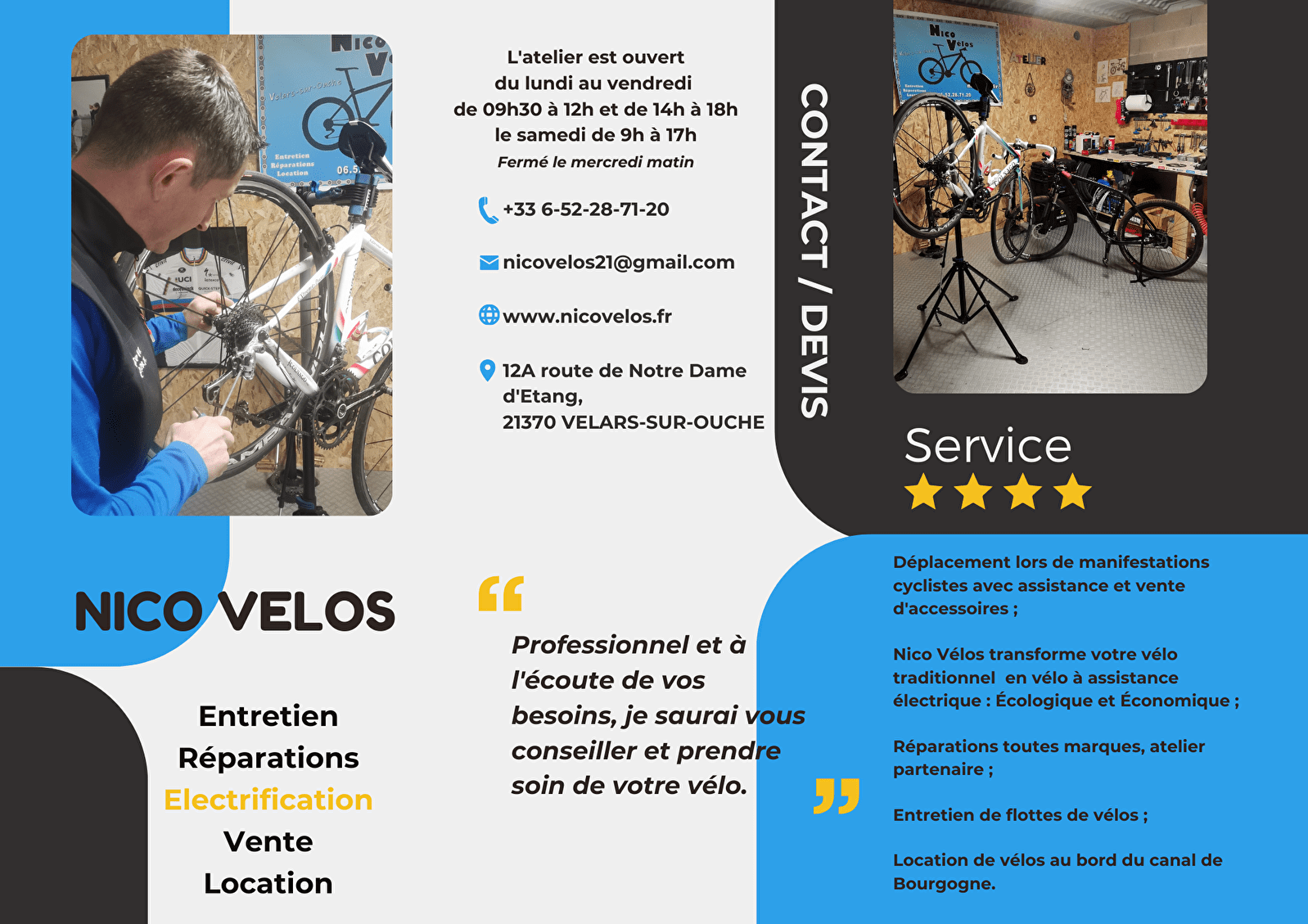Nicolas vous propose tous types de prestations et réparations : location de vélos (VTT, VTC, accessoires...), , électrification de vélos et vente des marques GHOST et LMX