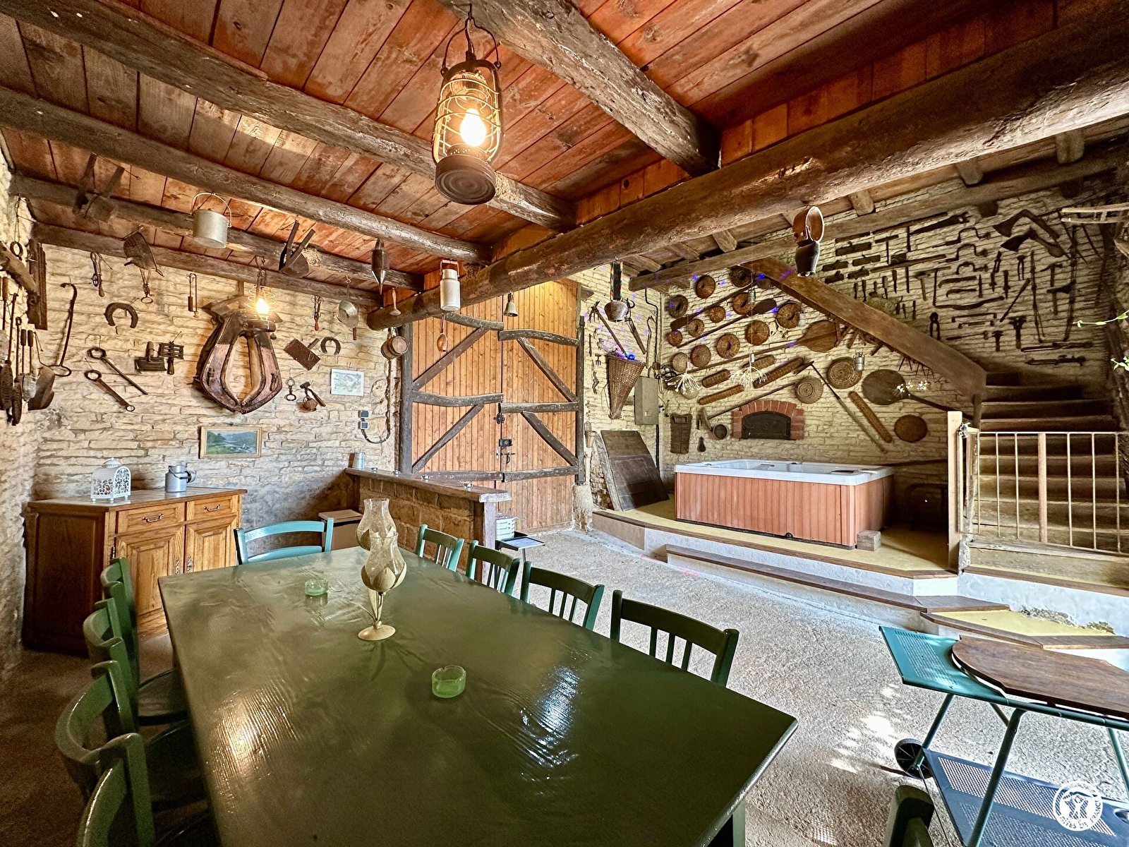 Sous la grange, un superbe espace aménagé vous permettra de partager des moments entre amis (mobilier