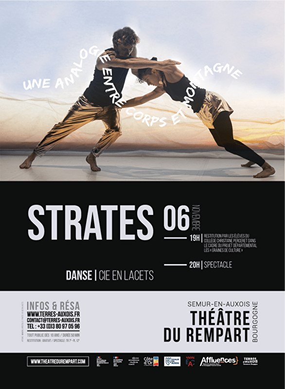Le projet se fait autour des thématiques et des disciplines de la création chorégraphique danse-paysage « STRATES ». La compagnie propose aux élèves de parcourir, ressentir, et s’exercer par le corps et la musique aux forces à l’œuvre dans les mouvements géologiques & poétiques présents dans la création « STRATES ». Le projet consistera donc à expérimenter, transmettre et créer en travaillant des inspirations de passages du spectacle, en proposant des ateliers de groupe danse-paysage. Le projet finira par la restitution commune lors d’une représentation de la performance au Théâtre de Semur-en-Auxois. Les élèves et leur famille assisteront ensuite directement à la représentation du spectacle par la compagnie En Lacets.