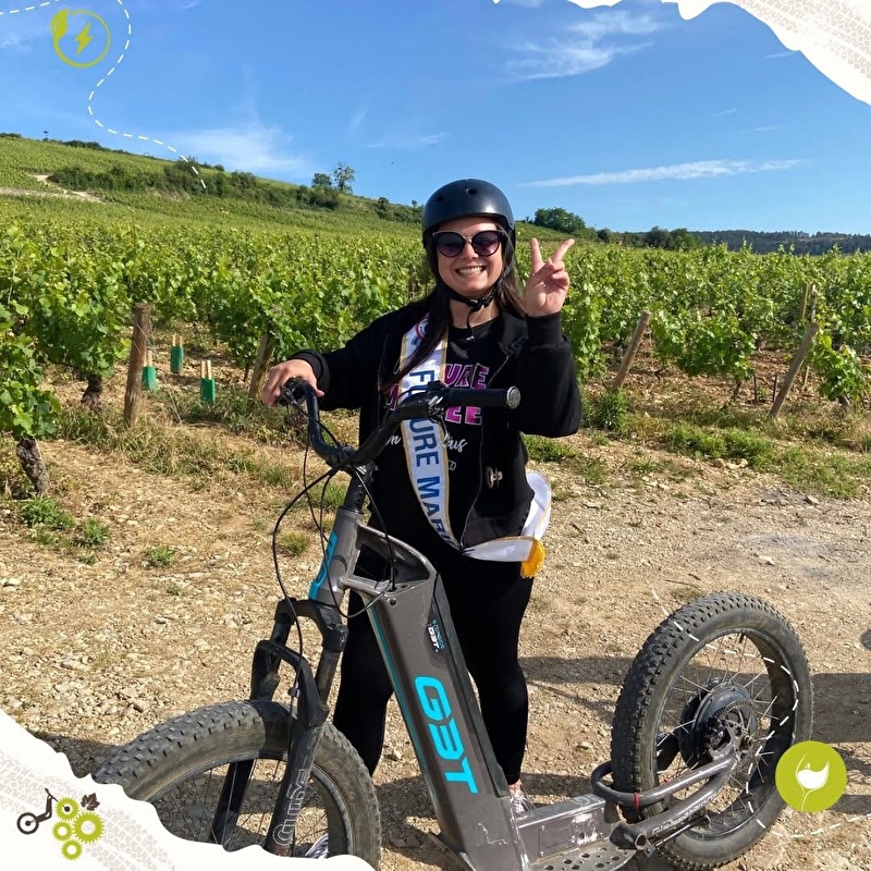 Partez à la découverte de la Bourgogne autrement grâce à la location de trottinettes tout-terrain 100% électriques. Une expérience unique d’œnotourisme durable au cœur des prestigieux vignobles de la Côte de Beaune et de la Côte de Nuits. En liberté via une application dédiée ou accompagnés d’un guide passionné, explorez des parcours authentiques portant le nom de climats légendaires : Meursault, Pommard, Corton-Charlemagne, Clos Vougeot ou encore Romanée-Conti. Entre vignes, forêts et villages emblématiques, vivez une aventure écologique, familiale et sportive accessible dès 14 ans.