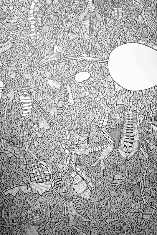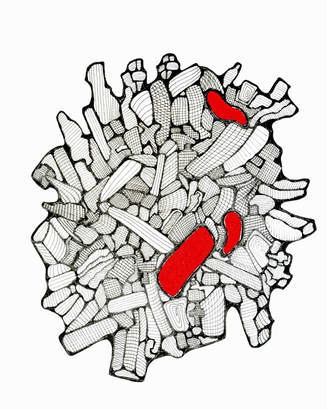 Dans les œuvres présentées dans cette exposition, l’artiste porte un intérêt à l’histoire des civilisations et plus particulièrement à ses modes urbains de construction et de circulation.